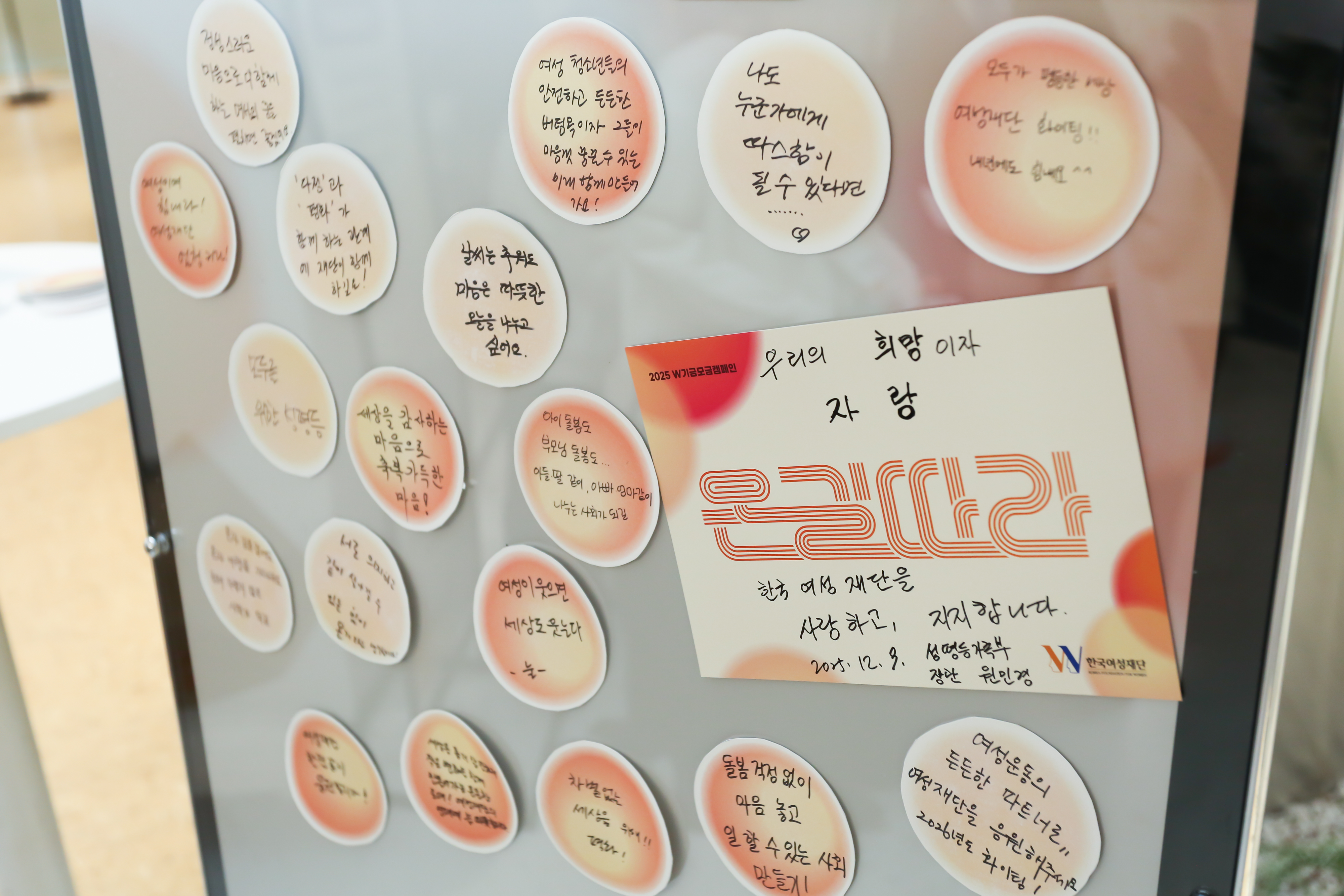 ‘온길따라’에서 나눈 온기와 응원이 오래도록 마음에 남습니다. 앞으로도 한국여성재단은 더 많은 여성이 차별 없이 잠재력을 펼치는 데 힘을 더하겠습니다. 그 길에 계속 함께해 주시길 부탁드립니다. |