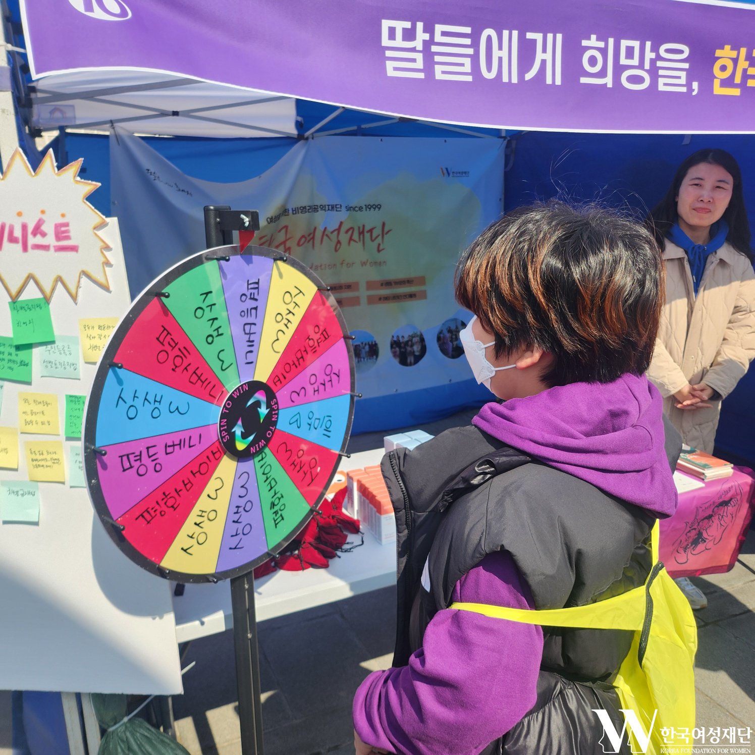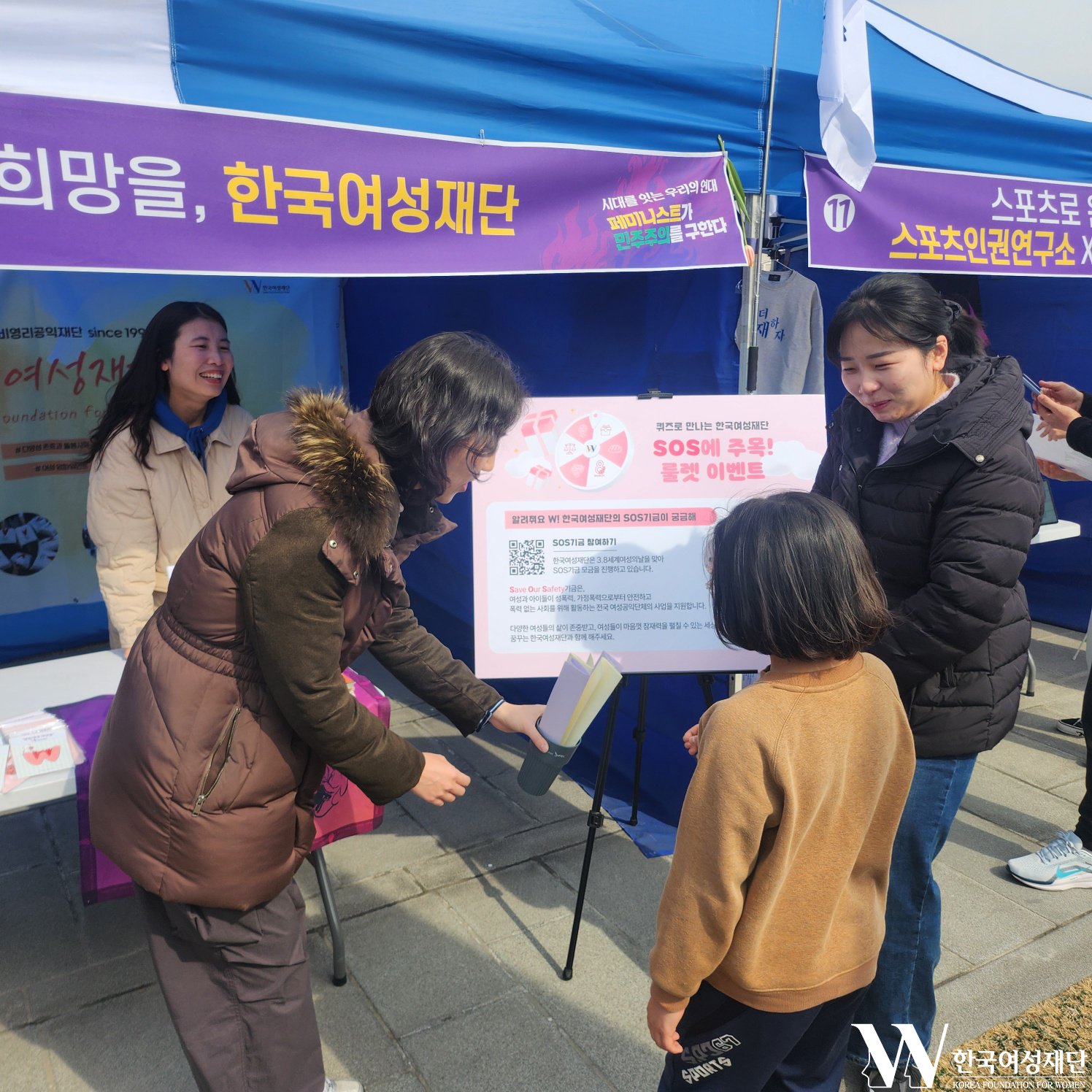 한국여성재단은 부스에서 재단과 SOS(Save Our Safety) 기금을 알리는 퀴즈 이벤트를 진행했습니다.