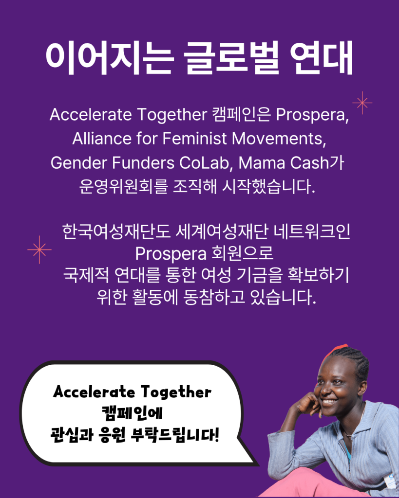 Accelerate Together는 성평등한 세상을 위한 여성 운동 기금 지원 환경의 급격한 변화에 대응하기 위한 글로벌 이니셔티브입니다.