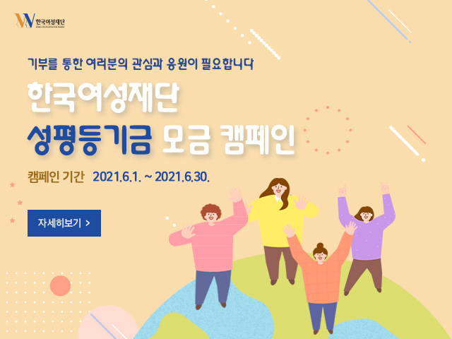 성평등기금 모금 캠페인 성평등기금 모금 캠페인 2021.06.25 <저작권자© 한국여성재단> 2021/06/25 9:00 첨부파일210604_성평등기금_모금캠페인_모바일.jpg 목록